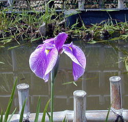 | 同日、スーパー横のマンションの生垣の下は松葉ギクの花盛り、毎年増えてきます。 | 同日、横十間堀のショウブ園。ポツポツ咲き始めています。 | |
