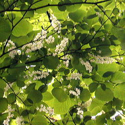 | これはマンション出口付近のタブノキ。随分と花開いてきました。 | 増上寺横の公園で。スダジイの花。 | 東京タワー横の古墳のある公園で。白雲木ではないかしら。暗い中下から撮ったけれどなんとか写っていました。 |