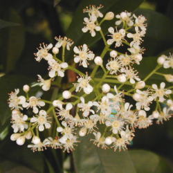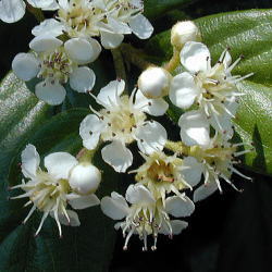 | 石楠花(シャクナゲ)図書館公園で。 | 名前不明の地面を張っている木の花。昨年から調べているのに名前はまだ分からない。車輪燈でした。 | カナメモチの花のアップ。 |