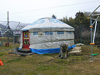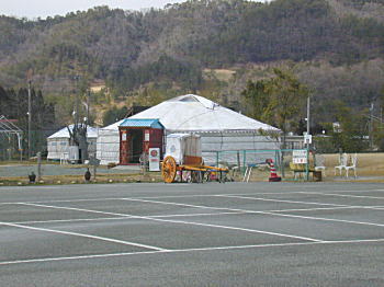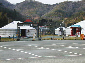 | モンゴルの里、入場無料です。 | 宿泊用のゲル。ベッドが6ケ、冬は寒いかな。 |