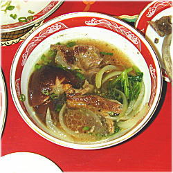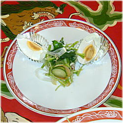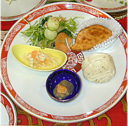 | ピロシキ、蒸しパン、豆腐の漬物など。 | 羊の岩塩煮込み。 | 鴨の岩塩漬け。半分食べた後。 |