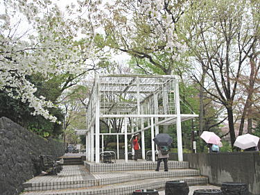| 4月5日(日)自然観察会で赤羽自然観察公園に出かけました。あいにくの雨ですが、明るい雨です。会員の二人が地元の人で、案内してくれました。 |