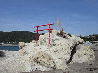 | 小磯に立っていた鳥居。 |