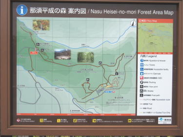 | 那須ゴンドラから10分ほどで「那須平成の森」に着きました。那須御用邸の半分ほどが環境省に移管され、自然環境を調査したうえ、平成23年に開園されたました。 |