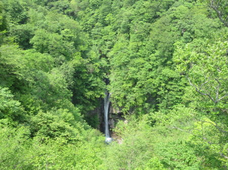 | 駒止の滝 遠いけれど滝壺も見えます。 ↑マウスオン |