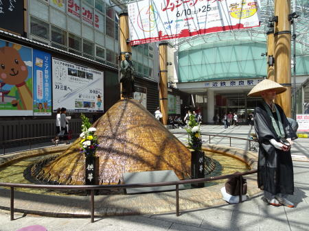 | 近鉄奈良駅前。行基像と托鉢僧。お賽銭をあげたら飴をくれました。 | |
