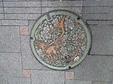 | もちいどの(餅飯殿)商店街 | 鹿と奈良八重桜のマンホール |
