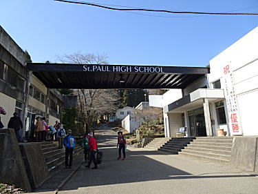 大久保バス停で降りて、少し歩くと聖パウロ学園に着きました。 |