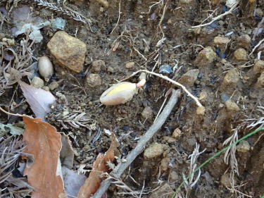 | シラカシのどんぐりが根を出しています。 |