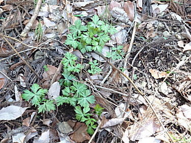 トリカブト。ニリンソウに似ているが葉裏が紫。 |