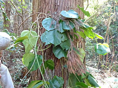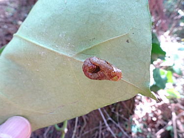 | アサギマダラの食草のキジョラン。葉の裏にサナギの抜け殻があった。 |