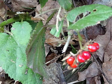 | 真っ赤なフユイチゴの実。 |
