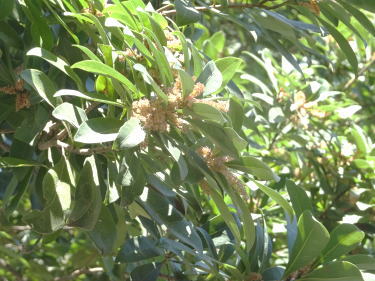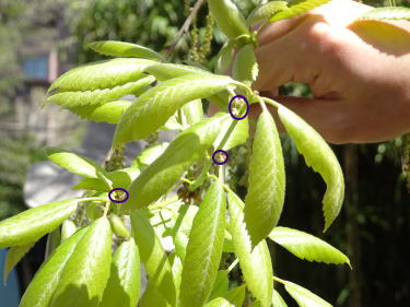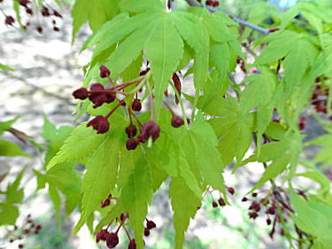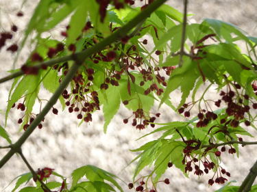 | ヤマモミジの花序 雄花と両性花が混在します。 |