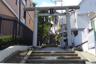 | 元は溝口神社の兄弟神の赤城社、明治以降に久地神社になった。 鳥居と拝殿 |