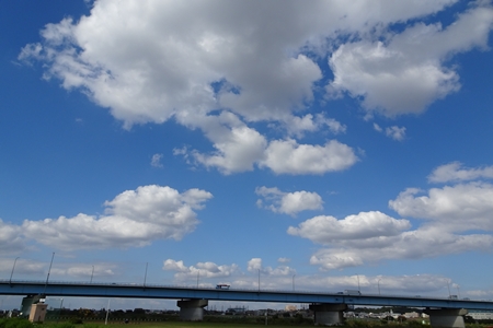 | 新二子橋。 空が大きい、雲がきれい。 |