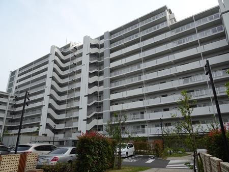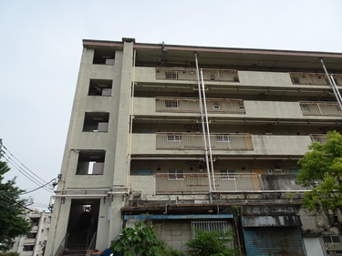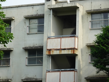 | すぐ近くの団地は古くて、人が住んでいるのか分からない。 この付近、空き地が多くて不思議。 |