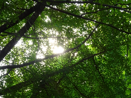 | 樹々の間から太陽の光(私のカメラでは星形にならない) ↑マウスオン | |