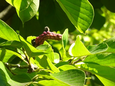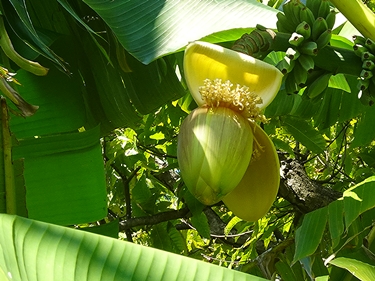 | 芭蕉の下に雄花、上に果実 | 芭蕉の雄花 |