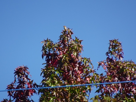 | 高い木のてっぺんでモズが鳴いています。 | |