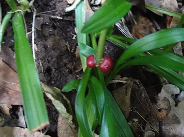 | ↑マウスオン キチジョウソウの実と花 ↑マウスオン |