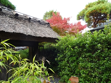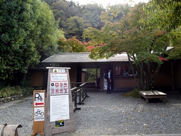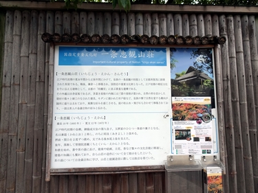 見慣れない門がありました。一条恵観山荘です。初めて知る名前です。寄りましょう。 |