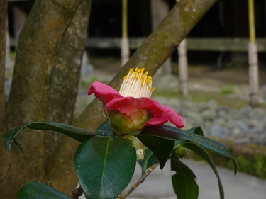 | 御幸門 門柱はアベマキの木そのままを使っています。 |