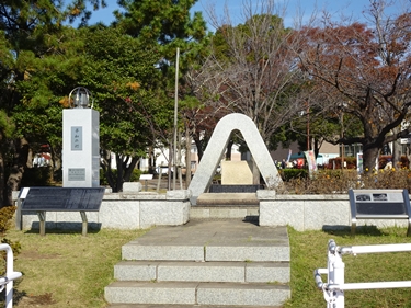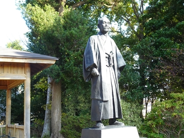 | 柔道で有名な嘉納治五郎の別荘跡地に立つ像と説明板 |