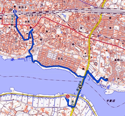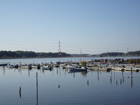 | 手賀大橋を渡ります。 橋の上から船溜まり。 ↑マウスオン |