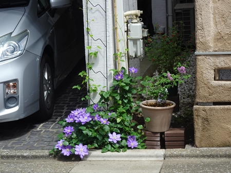 | つる性のクレマチスが下に集まっていた。でもきれい。 ↑マウスオン | |