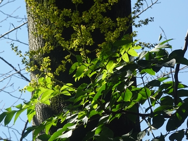 | 右半分に枝が伸びている。左側は道の上になるから伐採したのかな? |