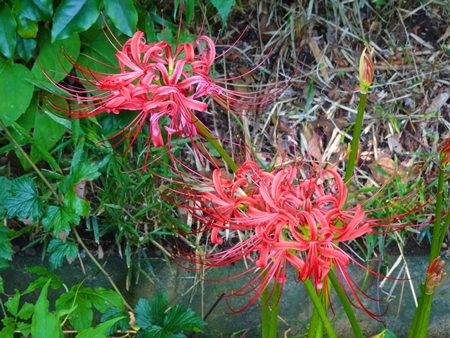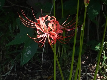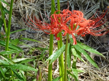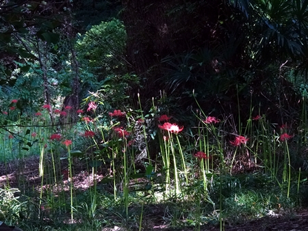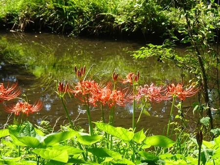 | 池のそばのヒガンバナ ちょっとトンボもいるよ。 |