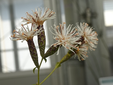 冷温室にも寄っていきます。初めての時には冷温室って何だろうと思っていましたが、冷室です。涼しい部屋です。今日みたいに暑い日には最適です。高山の植物を展示しています。懐かしいのもあります。 |