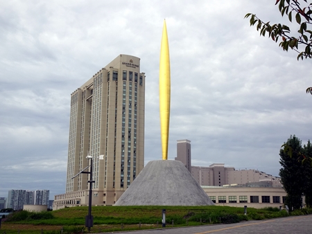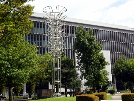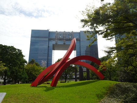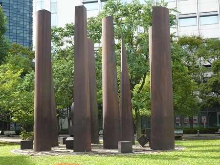 ホテルグランドニッコウの前に「自由の炎」がすっくと立っています。