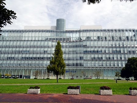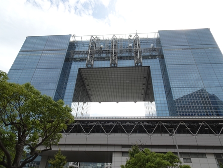 | よく目立つテレコムセンター、手前はゆりかもめの駅 |