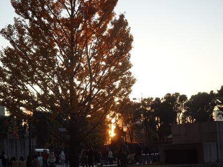 | 夕日を撮りたかったけれど、樹々の間に見えただけでした。 | |