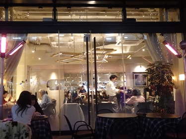 | レストランの入り口でワインを売っています。店内は満員です。 | |