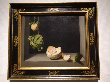 | 「マルメロ・キャベツ・メロンとキュウリのある静物」 ファン・サンチェス・コターン 厳粛性と神秘性で満たされたこのジャンル(スペインの静物画)の最高傑作 |