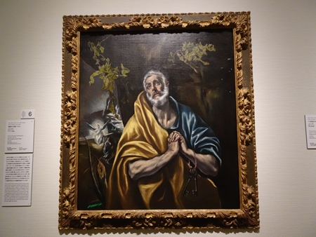 | 「懺悔する聖ペテロ」 エル・グレゴ 引き延ばされた人体、神秘的な劇的で光で表現されています。 |