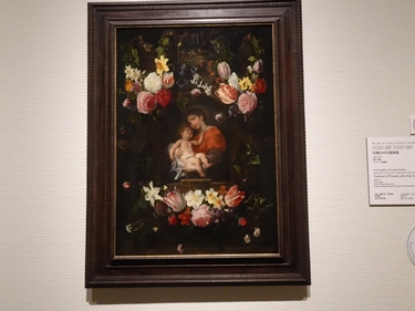 「花環の中の聖母子」 ダニエル・セーヘルス、コルネリス・スフート 花の周りの蝶はキリストの復活の象徴 |