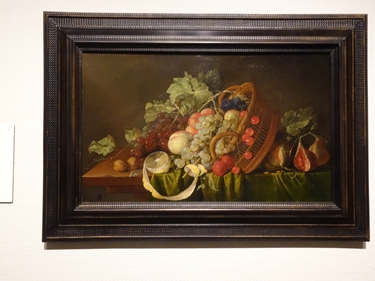 | 「果物籠と猟鳥のある静物」 ファン・バン・デル・アメン フランドルの静物画由来の華やかさと装飾性を兼ね備えています。 |