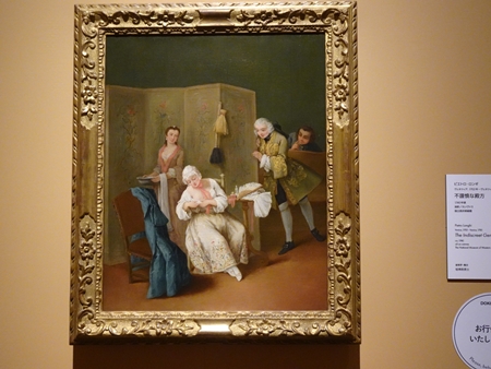 | 「不謹慎な殿方」 ピエトロ・ロンギ 身支度中の女性を覗く行儀の悪さを描いています。 |